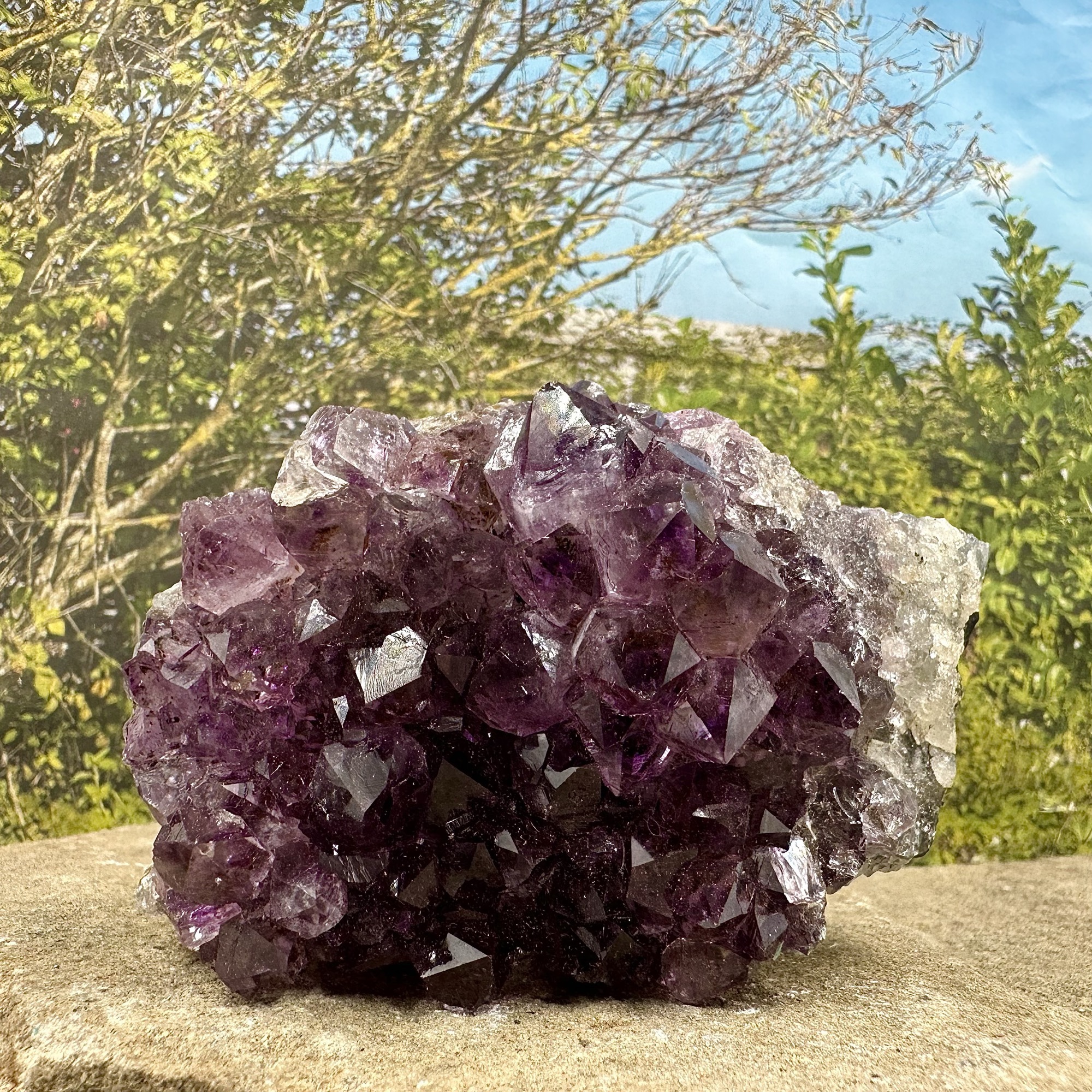 Indulge in the regal allure of Brazilian Amethyst, a gemstone revered for its captivating violet hues and unparalleled beauty. Mined from the rich mineral deposits of Brazil, these Amethyst crystals exhibit the finest quality and showcase the mesmerizing charm that has made Amethyst a favorite among collectors and crystal enthusiasts.