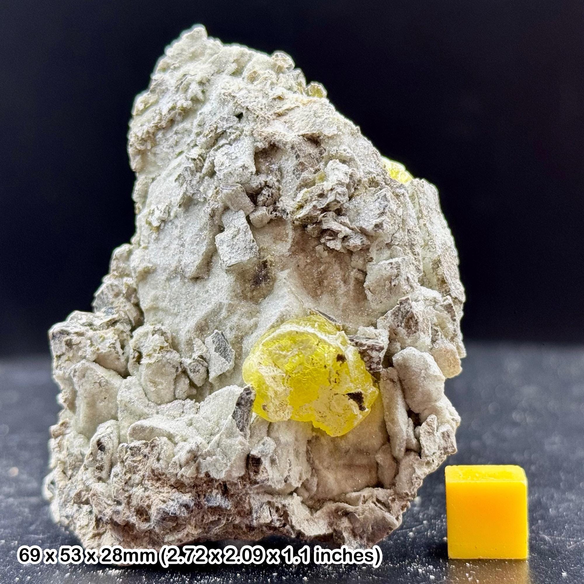 This premium-quality Grade A brucite crystal, sourced from the renowned mineral-rich region of Wadh in Khuzdar District, Balochistan Province, Pakistan, is a must-have for collectors and enthusiasts. Known for its unique yellow and white hues and fibrous texture, brucite is a rare magnesium hydroxide mineral, highly prized for its aesthetic appeal and crystal structure.