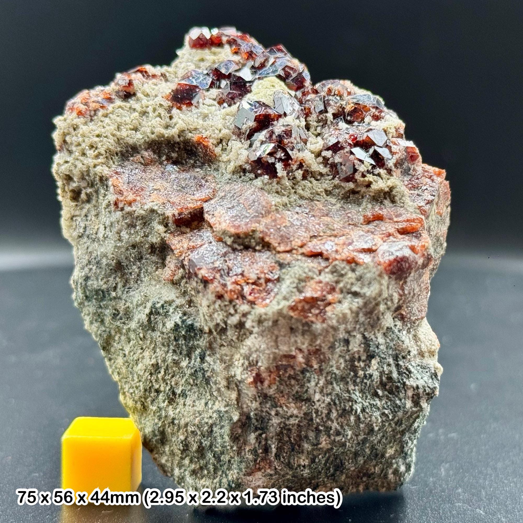 * Grade A Quality: This specimen was carefully chosen for its vivid orange-red Spessartine Garnet crystals and contrasting natural matrix, making it a visually stunning addition.
