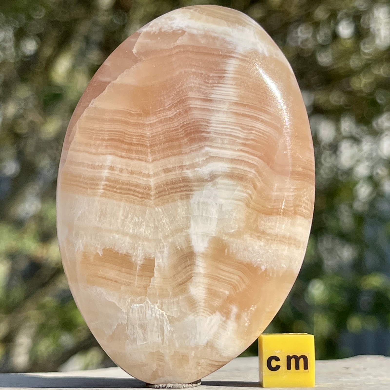 Worry stones are smooth, polished gemstones, usually in the shape of an oval with a thumb-sized indentation, used for relaxation or anxiety relief. The smoothness of the stone is most often created naturally by running water. The size of a worry stone is often about half the size of a silver dollar coin in the United States. They are used by holding the stone between the index finger and thumb and gently moving one’s thumb back and forth across the stone. This action of moving one’s thumb back and forth across the stone can reduce stress.