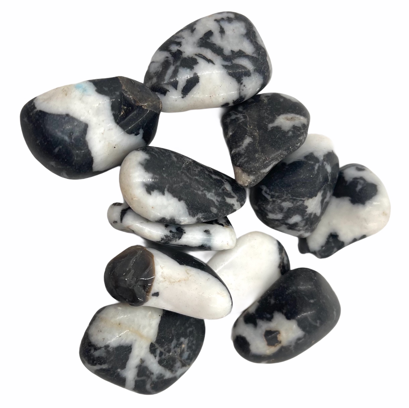 Tumblestones or “tumbled stones” as they are also referred to are made by “tumbling” rough crystals, minerals or rocks in grit for a number of days in a tumbler machine. Different grades of grit are used in the process until the rough edges are smoothed, then polish is added to bring a soft shiny surface to the specimen. Because of this process each stone will be unique in shape and colour.