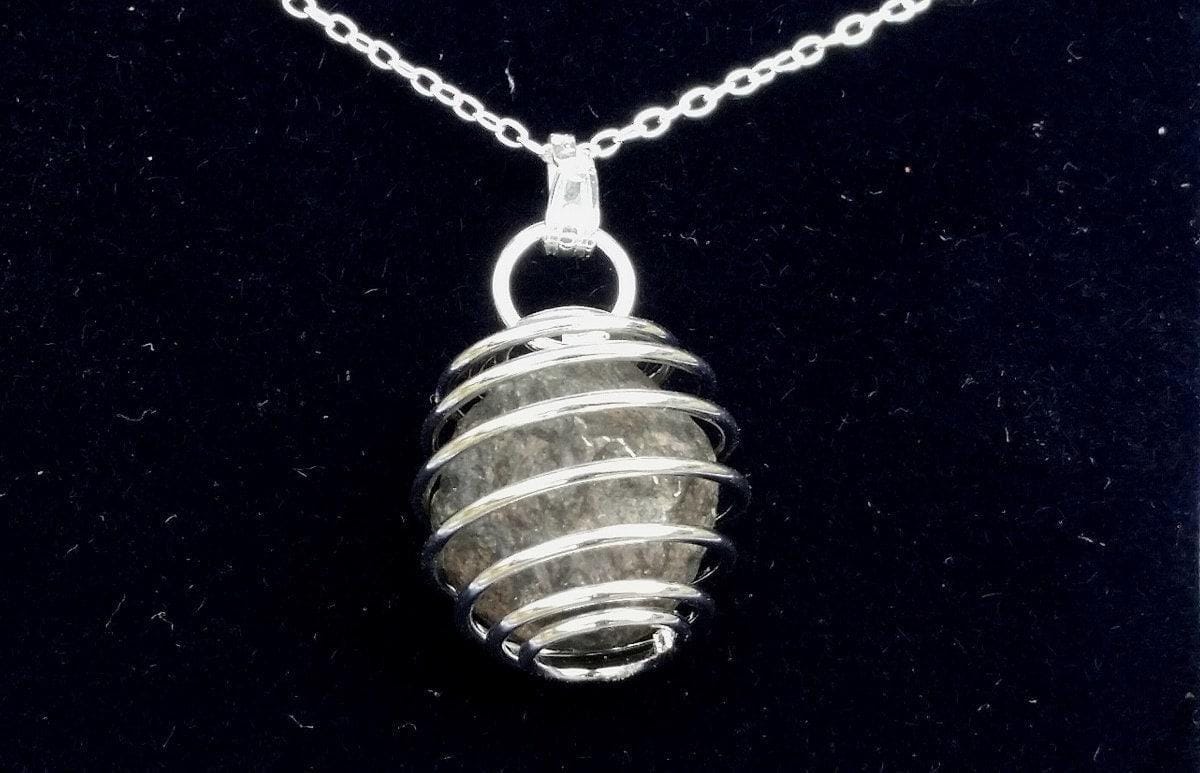 A beautiful little pendant crafted from a whole stone meteorite which is encased inside a silver plated cage, and strung from a lovely 18″ sterling silver curb chain. Neatly presented in a high quality jewellery box. The meteorite has been fully identified and comes provided with a certificate of authenticity as well as a detailed meteorite information sheet.