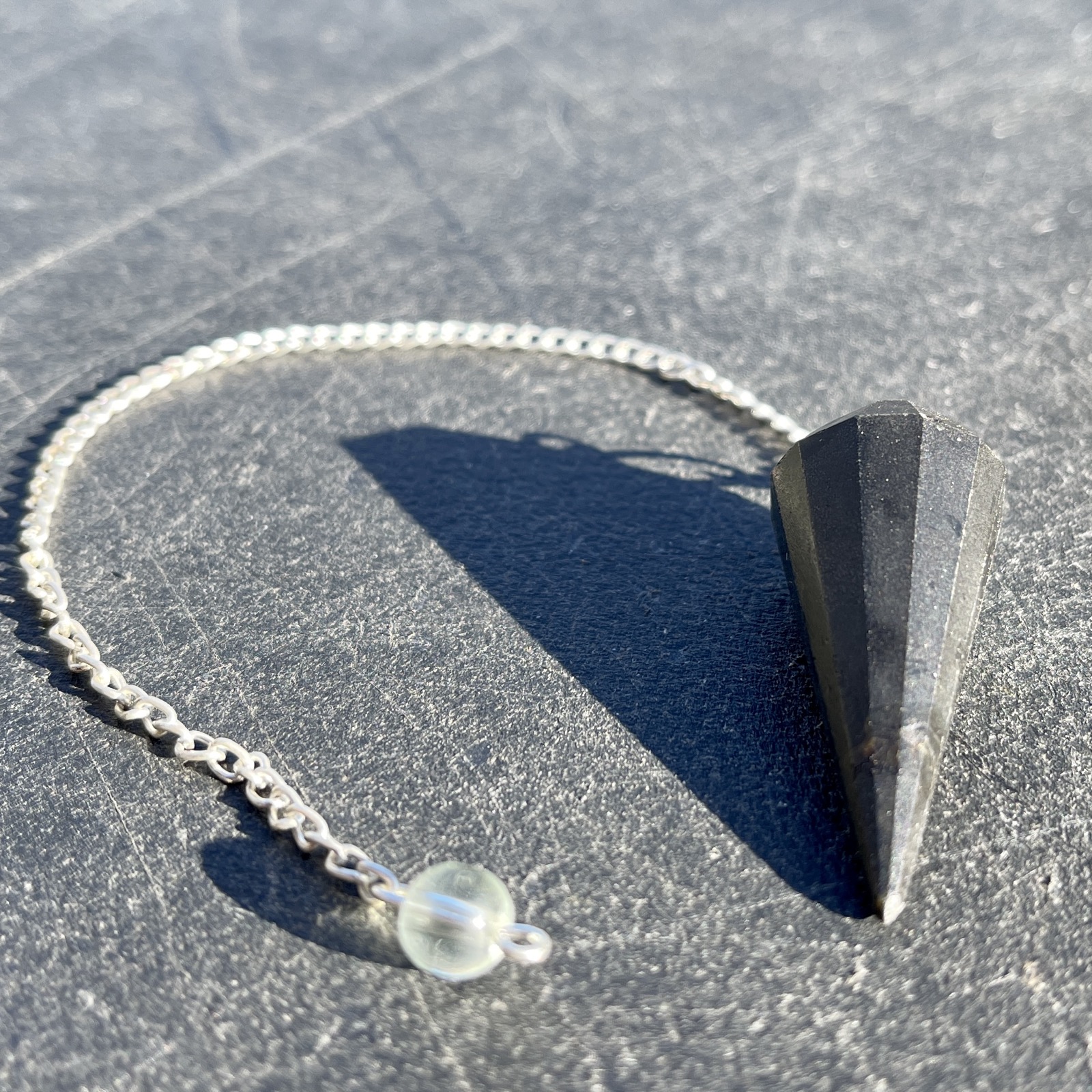 Pendulums promote healing with the process of Dowsing which seeks out invisible energies. This connects people to higher energies spiritually and can help locate any blocks in energy. They are used as a form of reflection by asking questions to receive guidance, awareness, and understanding. Beautiful Faceted Pendulum with Beaded Stopper – Dowsing Scrying.