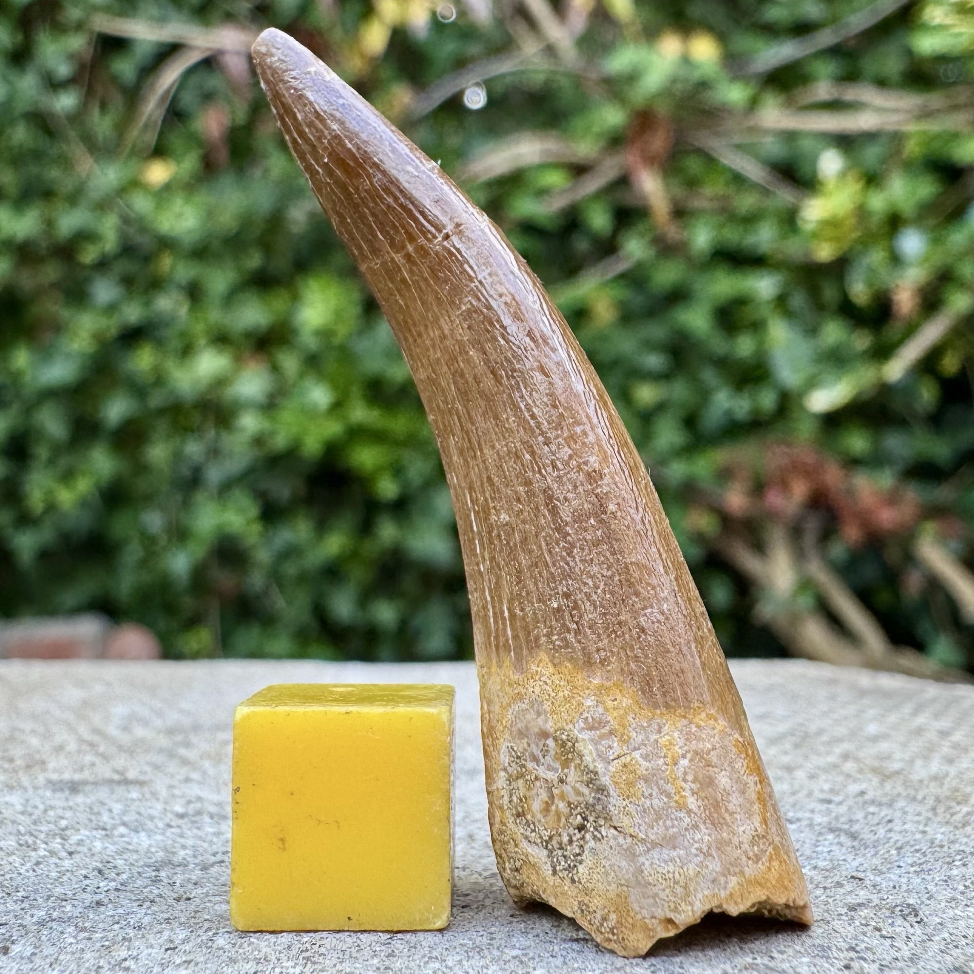 Each specimen is a carefully selected piece from our collection. The image shows an example of the quality and form of the tooth you will receive. A scale cube (1cm) is included in the photograph for accurate size reference.