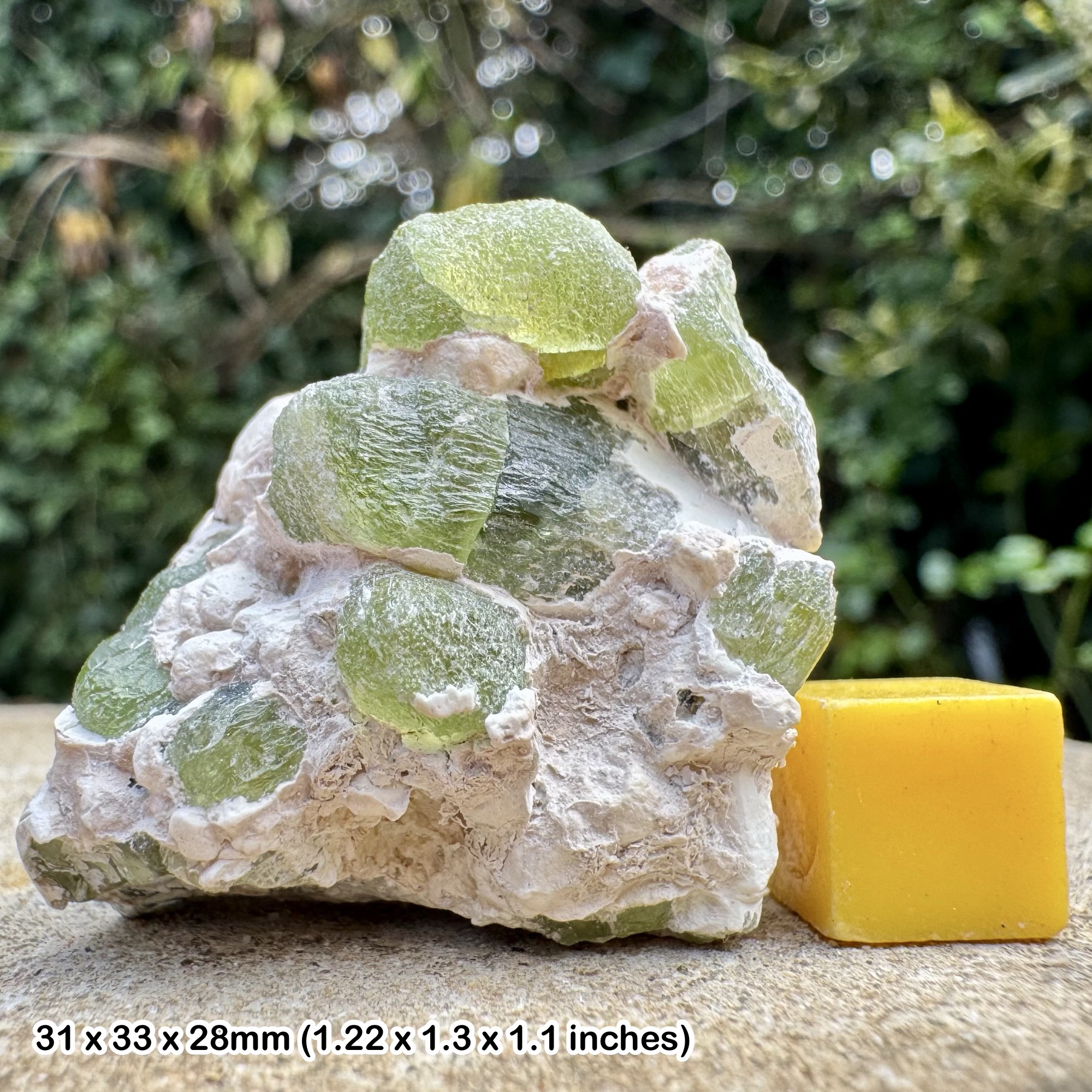 This listing features a RARE Peridot with Magnetite Crystal Cluster from the famous Supat Mine, Mansehra District, Khyber Pakhtunkhwa (KPK), Pakistan. You will receive the exact specimen shown in the photo. A 1cm scale cube is included for reference – please see the image for full sizing.