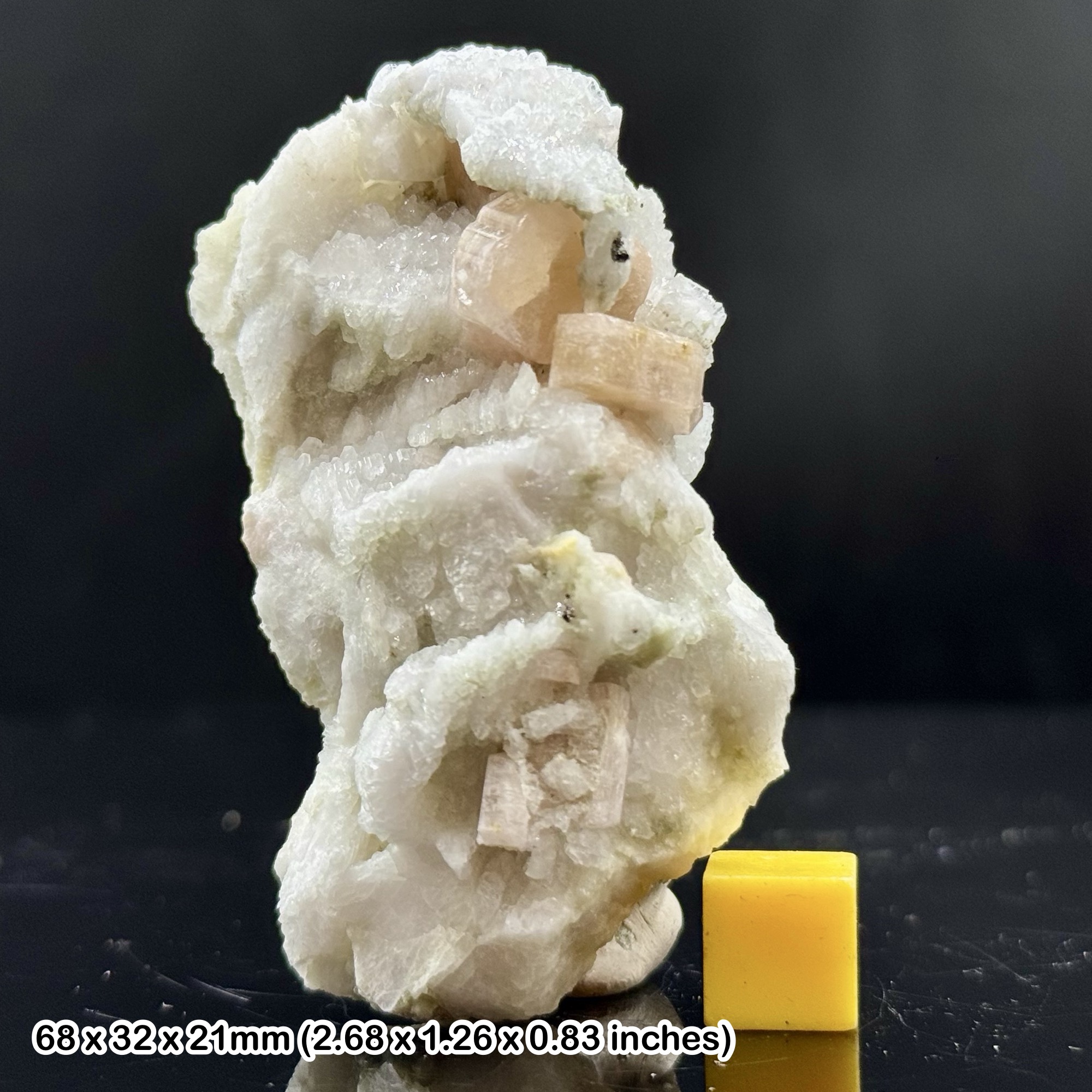 This is a rare pink Apatite crystal cluster on natural matrix from the famous mineral-rich region of Skardu, Pakistan. Known for producing exceptional quality minerals, Skardu’s pegmatite deposits are particularly renowned for their colourful gem minerals such as Tourmaline, Aquamarine, Topaz, and Apatite. This stunning specimen showcases vibrant pink Apatite crystals nestled on their natural host rock, offering both scientific significance and visual beauty. The exact crystal shown in the photos is the one you will receive, displayed alongside a 1cm scale cube for accurate sizing. Every specimen is 100% genuine and supplied with a Certificate of Authenticity.