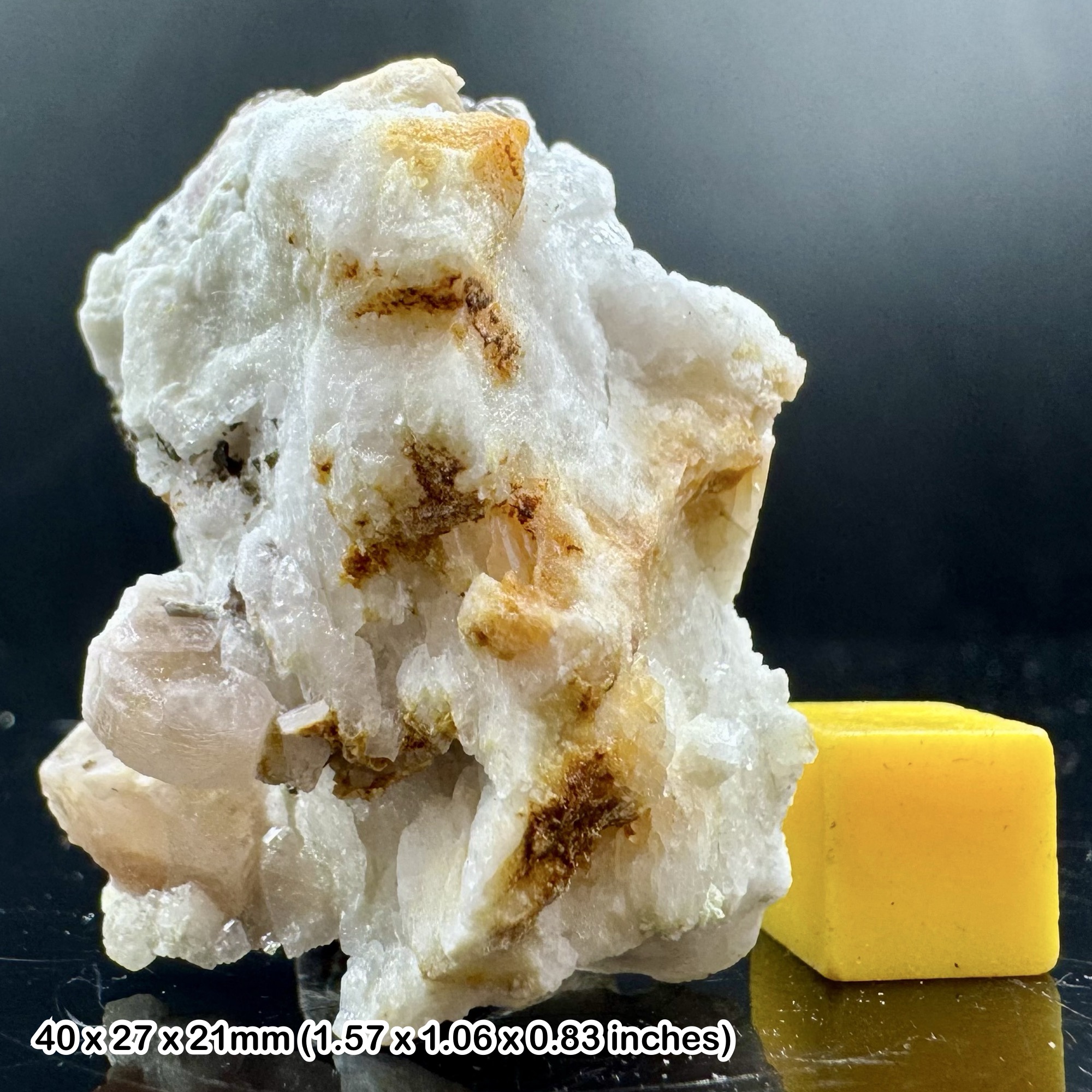 This is a rare pink Apatite crystal cluster on natural matrix from the famous mineral-rich region of Skardu, Pakistan. Known for producing exceptional quality minerals, Skardu’s pegmatite deposits are particularly renowned for their colourful gem minerals such as Tourmaline, Aquamarine, Topaz, and Apatite. This stunning specimen showcases vibrant pink Apatite crystals nestled on their natural host rock, offering both scientific significance and visual beauty. The exact crystal shown in the photos is the one you will receive, displayed alongside a 1cm scale cube for accurate sizing. Every specimen is 100% genuine and supplied with a Certificate of Authenticity.