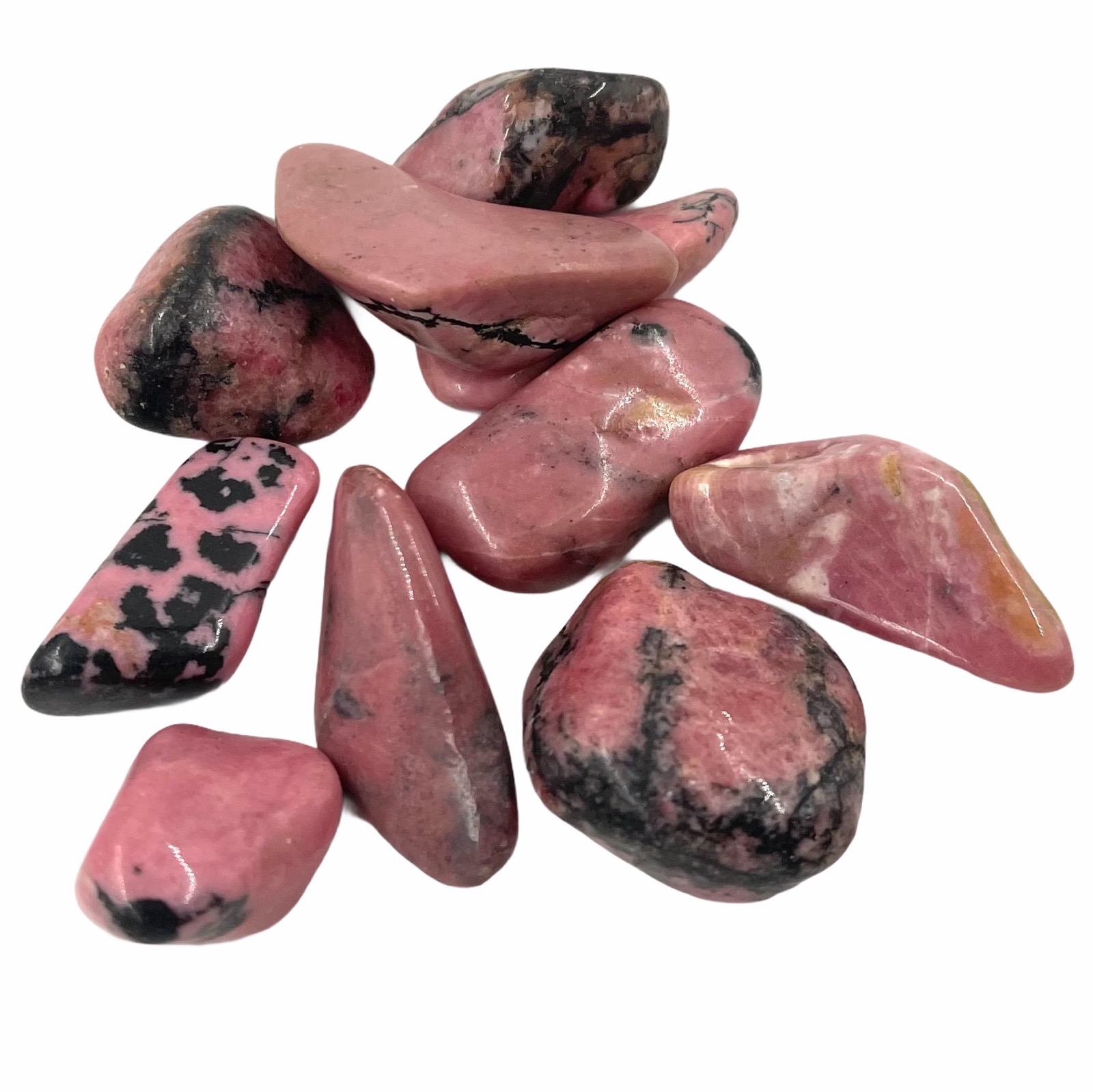 Tumblestones or “tumbled stones” as they are also referred to are made by “tumbling” rough crystals, minerals or rocks in grit for a number of days in a tumbler machine. Different grades of grit are used in the process until the rough edges are smoothed, then polish is added to bring a soft shiny surface to the specimen. Because of this process each stone will be unique in shape and colour.